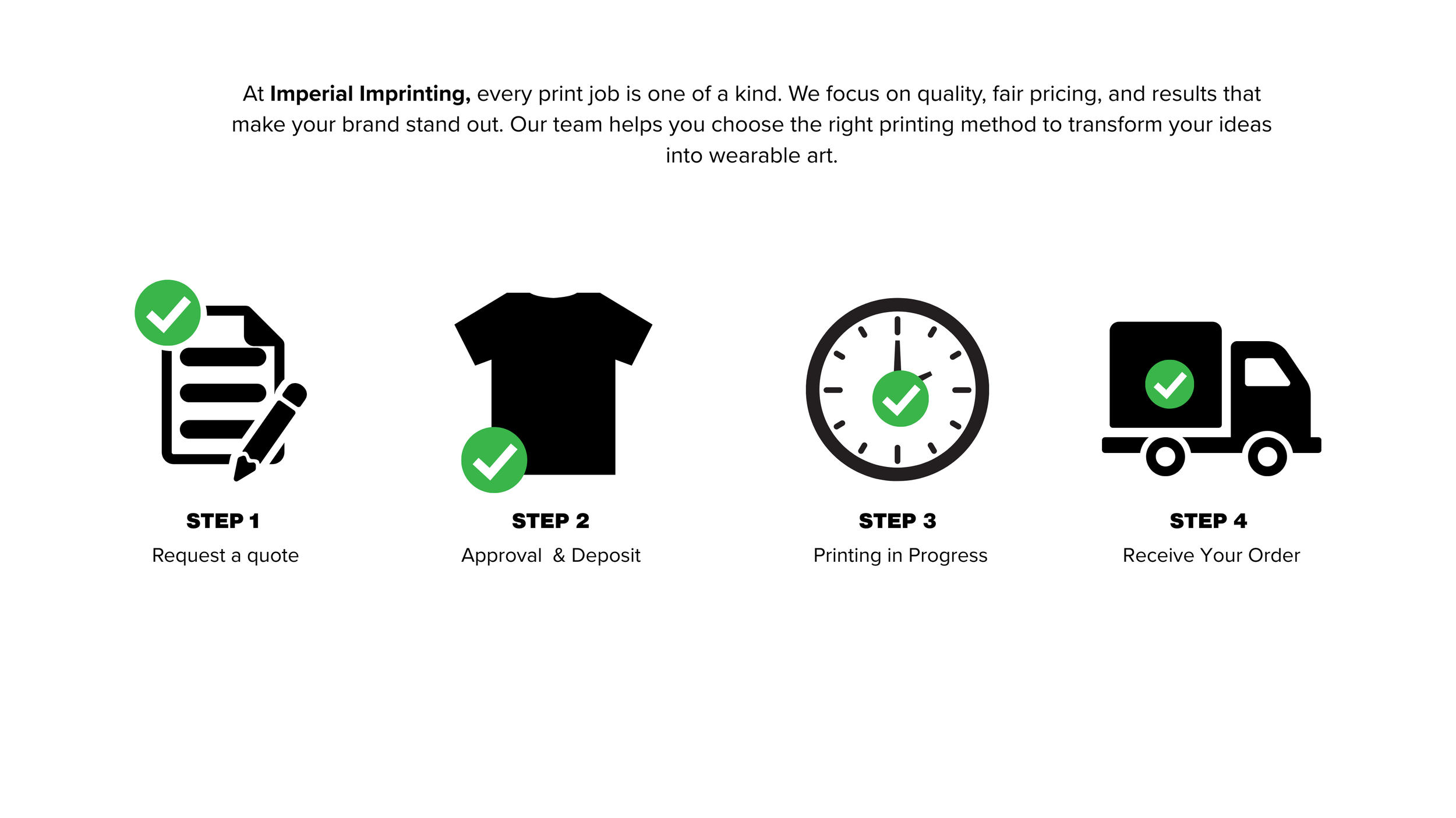Every print job is one of a kind. We focus on quality, fair pricing, and results that make your brand stand out. Our team helps you choose the right printing method to transform your ideas into wearable art.